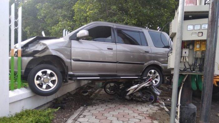 Setelah dekat lokasi kejadian, pengemudi mobil malah tancap gas lalu menabrak sepeda motor Suzuki Spin dan oleng ke kanan menabrak pembatas jalan.