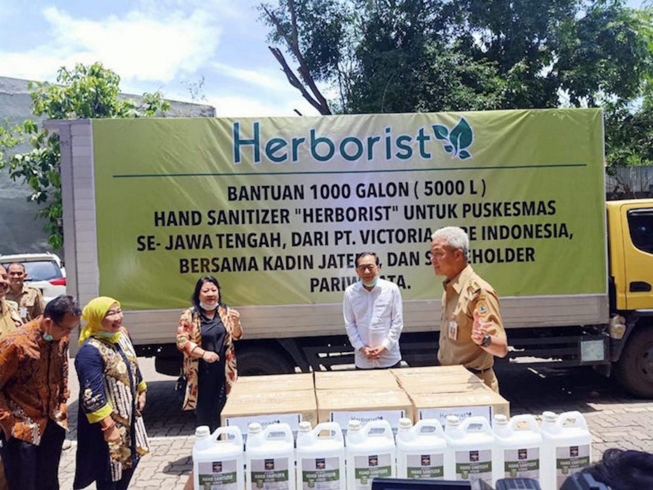 Herborist juga berkolaborasi dengan pemerintah daerah, salah satunya Pemprov Jateng, untuk menyalurkan bantuan berupa 5.000 liter hand sanitizer kepada instansi kesehatan, seperti puskesmas.