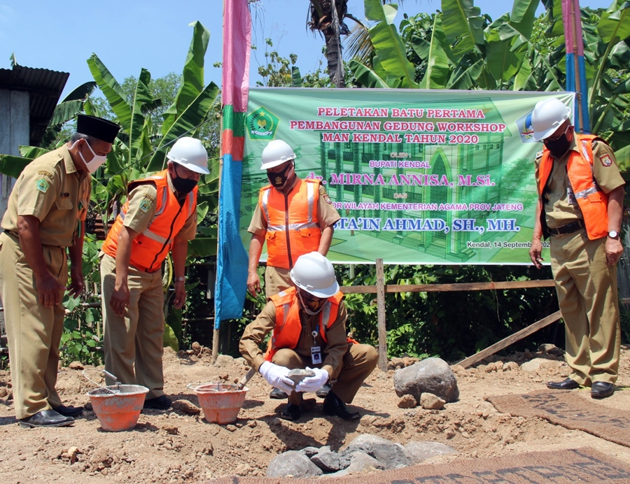proyek pembangunan gedung penunjang keterampilan siswa dari bantuan dana Surat Berharga Syariah Negara (SBSN) Tahun 2020 di MAN Kendal dimulai.