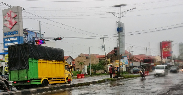 Meski demikian, keduanya terkesan tak menghiruakan kondisi tersebut dan tetap bernyanyi di dekat mobil yang berhenti akibat lampu merah.