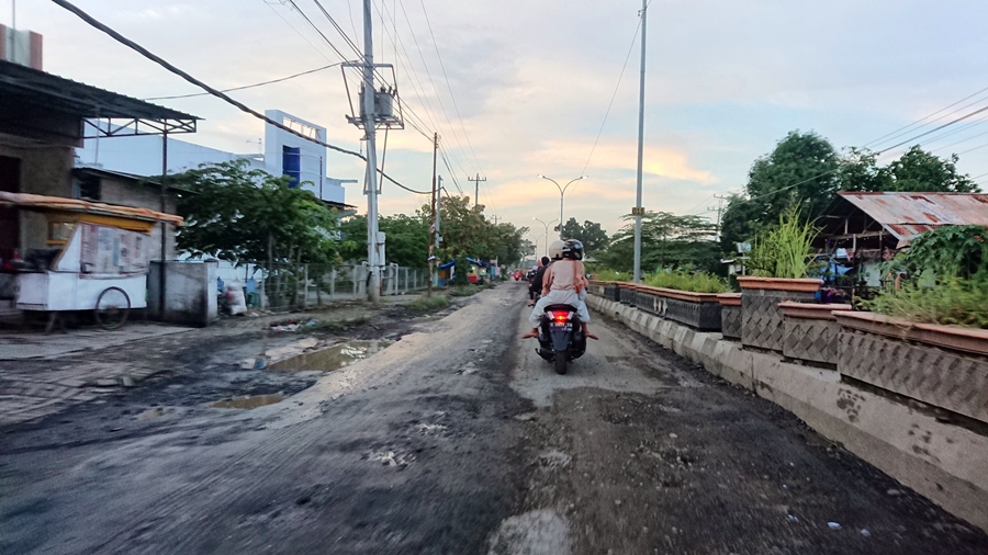 Selain aspal yang ada rusak, jalan itu juga dipenuhi lubang.