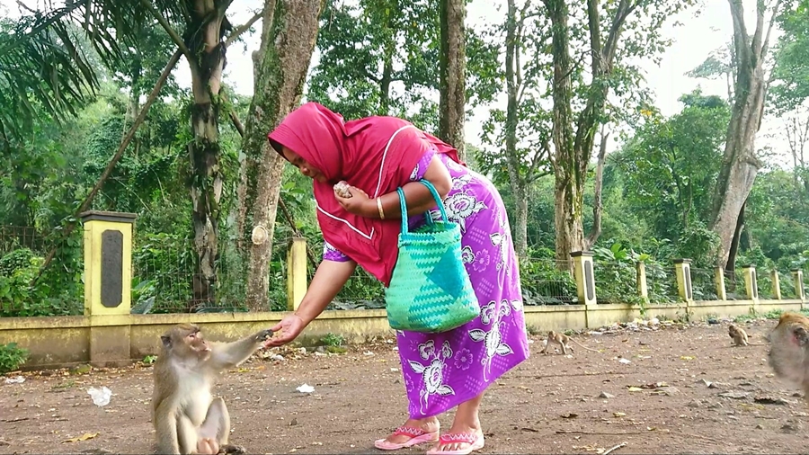 Selain memberi makan, dia acapkali berkomunikasi dan berbincang dengan beberapa monyet itu.