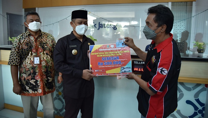Pemkab juga telah menyerahkan bantuan sosial kepada sopir angkot, kernet, serta juru parkir di Kota Kebumen di masa PPKM Darurat.