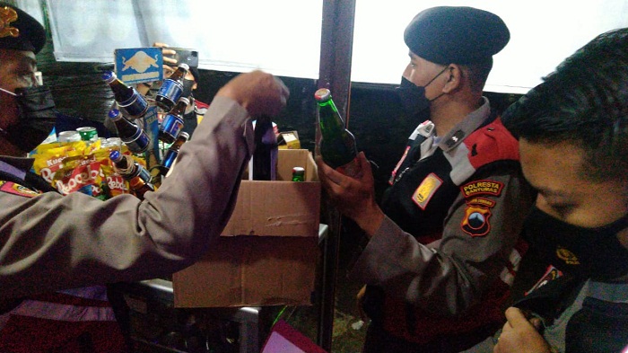 Operasi tersebut dipimpin Kanit Turjawali Iptu Trijanto dengan mengamankan sedikitnya 52 botol miras dari berbagai merk.