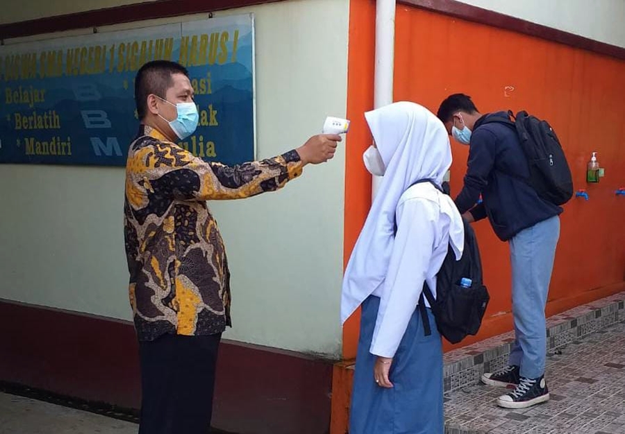 Pihak sekolah masih menerapkan protokol kesehatan ketat demi mencegah penyebaran Covid-19 varian baru.