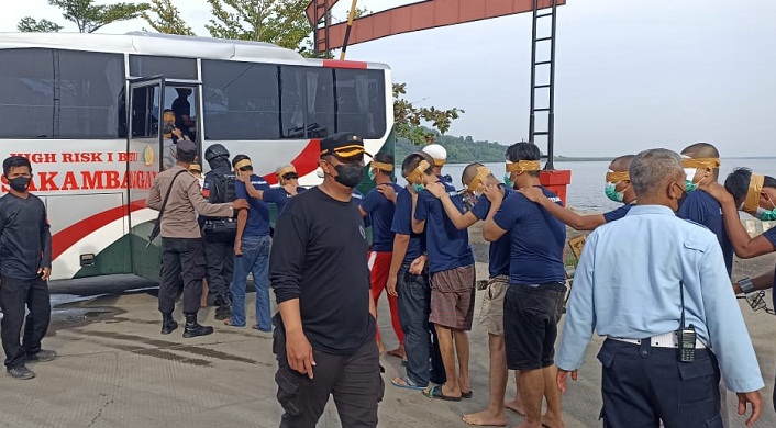 Mereka dipindahkan melalui Dermaga Wijayapura, Cilacap, dan diterima kepala KPLP Lapas Batu, didampingi Dansatgas Dermaga Wijayapura Nusakambangan.