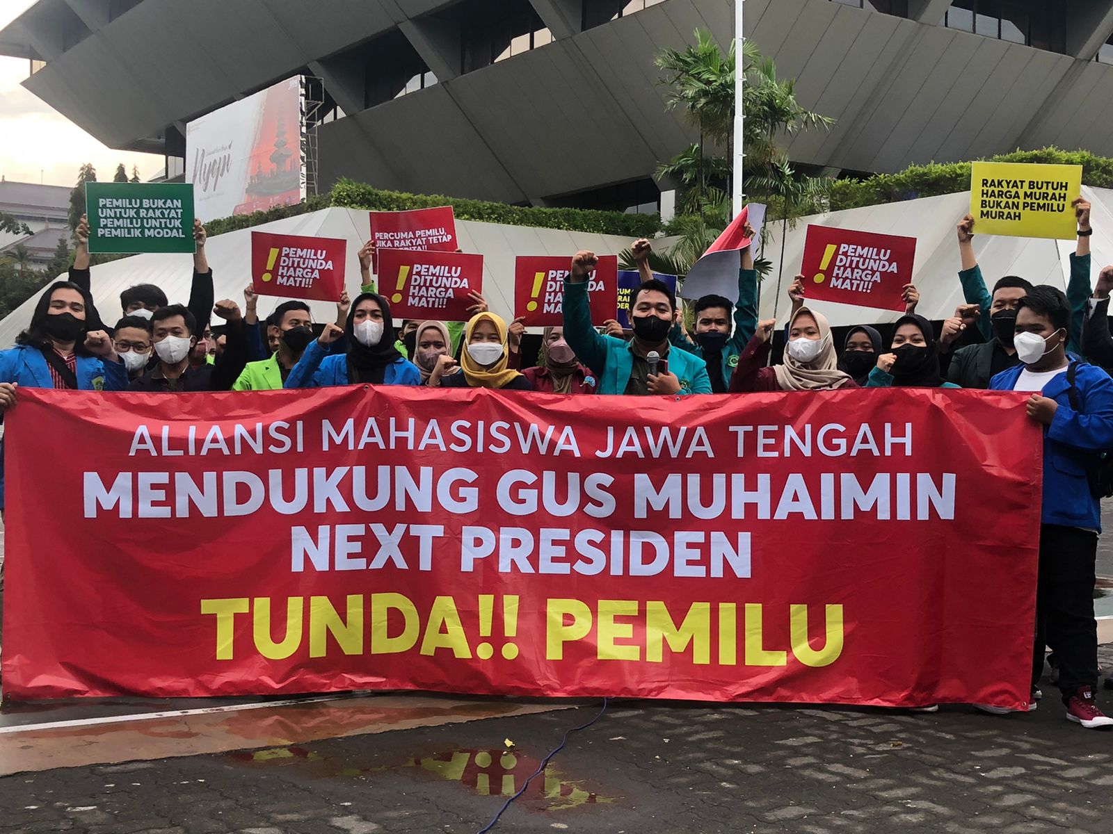 TRIBUNBANYUMAS.COM,SEMARANG- Aliansi Mahasiswa Jateng (AMJ) mendukung pemilu diundur.