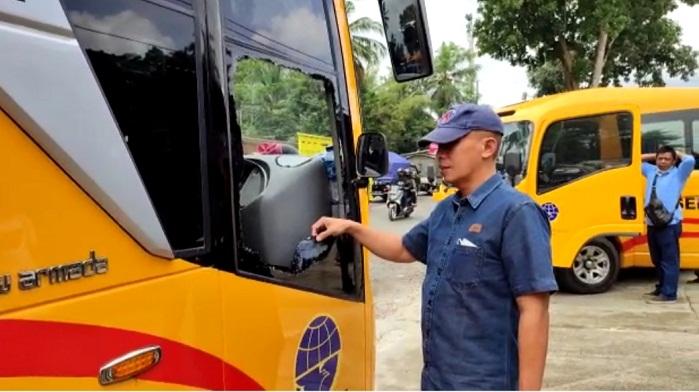 Bus sekolah milik Pemkab Banyumas dipecah kacanya oleh orang yang tidak bertanggung jawab, pada Sabtu (26/3/2022).