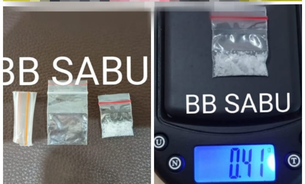 Saat melakukan penggeledahan di rumah AS, polisi menemukan beberapa barang bukti seperti sebuah plastik klip yang berisi 1 bungkus plastik klip isi sabu seberat 0,41 gram.