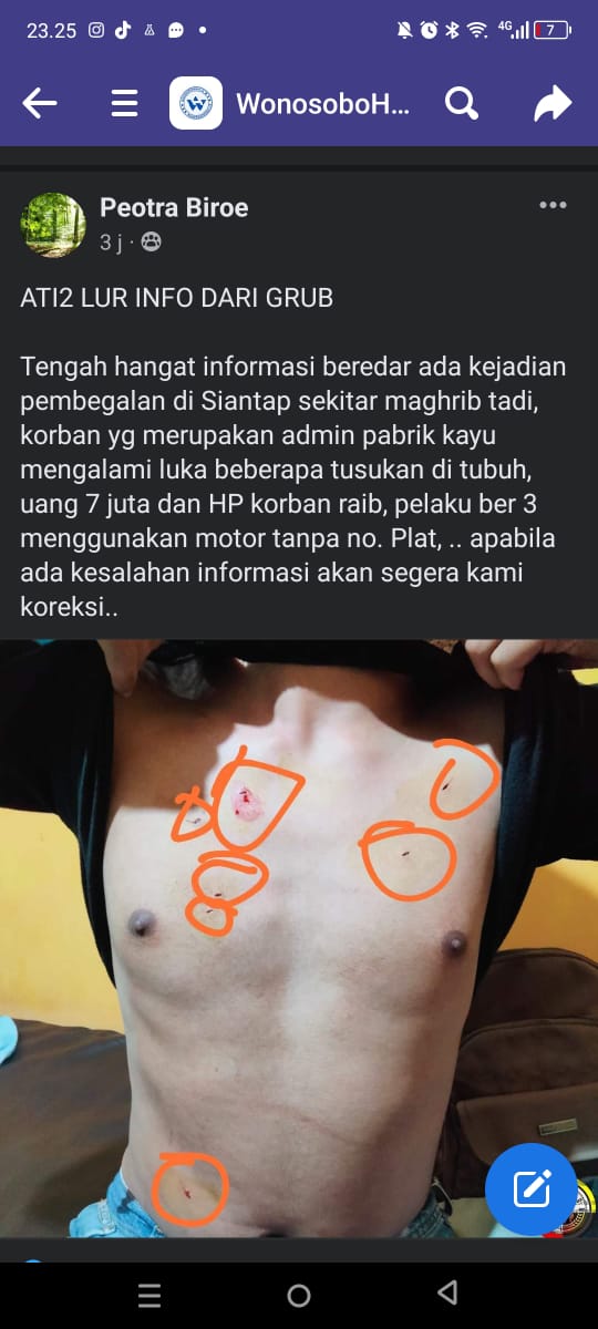 WONOSOBO - Sosial media Facebook baru-baru ini digegerkan dengan kabar adanya peristiwa pembegalan di Jalan Siantap Desa Wonolelo, Wonosobo.