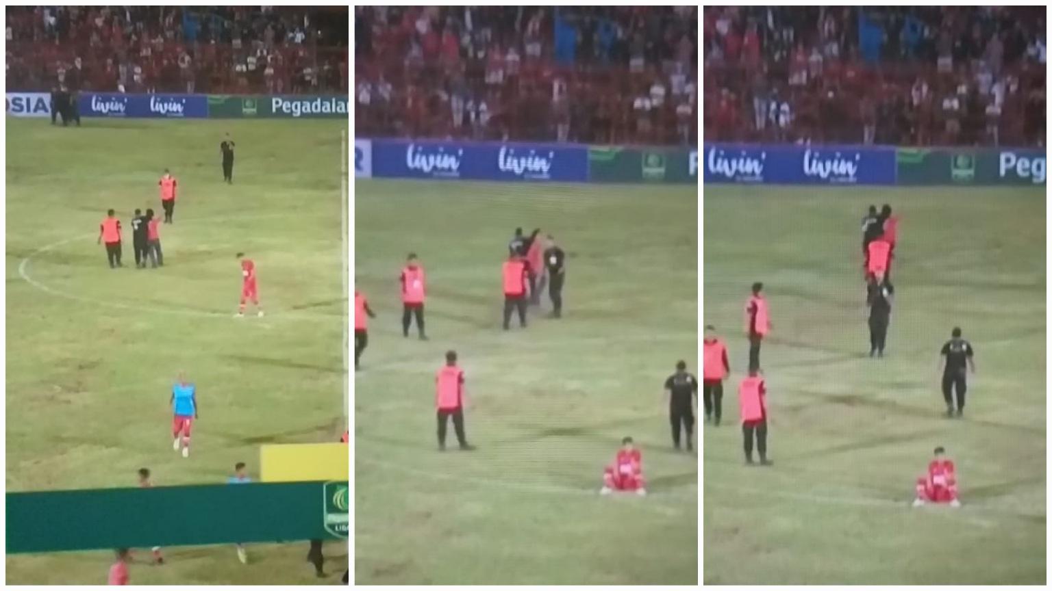 Bahkan, ada pitch invader atau penonton yang masuk ke lapangan dan berlari ke arah wasit.