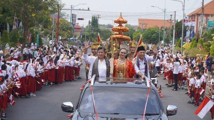 TRIBUNBANYUMAS.COM, JEPARA - Rombongan kirab Ratu Kalinyamat disambut antusias pelajar dan masyarakat Jepara, Senin (13/11/2023).