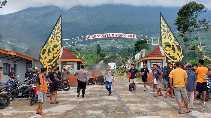 Bahkan, warga juga membakar ban yang diletakkan di sekitar Jalan Wisata Margo Lawu.