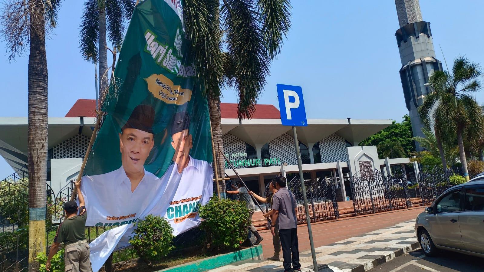 Baliho Paslon Pilkada Pati Dipasang di depan Masjid Agung, Dicopot Satpol PP Karena Melanggar