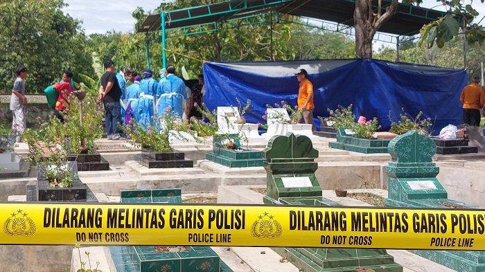Pantauan di lokasi, polisi memasang garis pengaman di sekitar area makam supaya warga tidak mendekat saat proses ekshumasi.