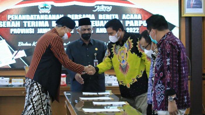 Gubernur Jawa Tengah Ganjar Pranowo menyerahkan bantuan keuangan ke sembilan partai politik tingkat provinsi Tahun 2022.